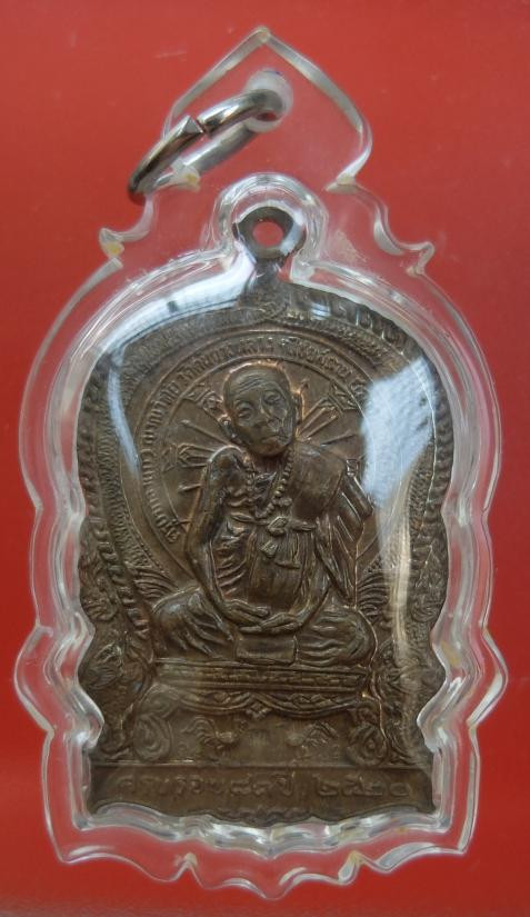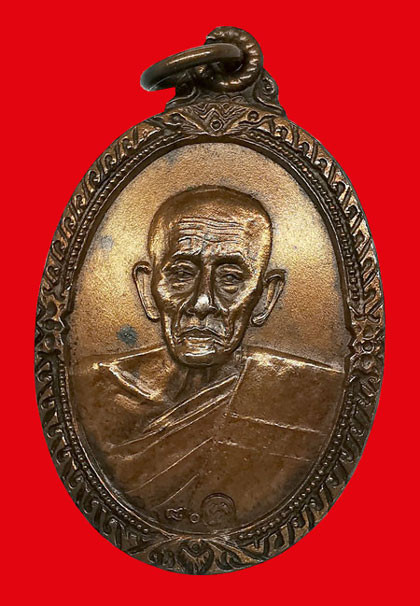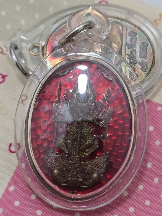 ล็อกเก็ตพระมหาจักรพรรดิ ครูบากฤษดา สุเมโธ วัดป่ายาง (สันพระเจ้าแดง) จ.ลำพูนฉากแดง หลังแผ่นธรรมธาตุทองเหลือง สร้าง 142 องค์ ปี 2557 เคาะเดียว
