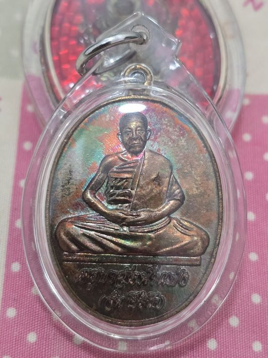 เหรียญรุ่นแรก ครูบาจันทร์ วัดน้ำแป้ง ทองแดงผิวรุ้ง สภาพสวยเดิม วิ๊งๆ เลี่ยมพลาสติกเก็บผิวครับ