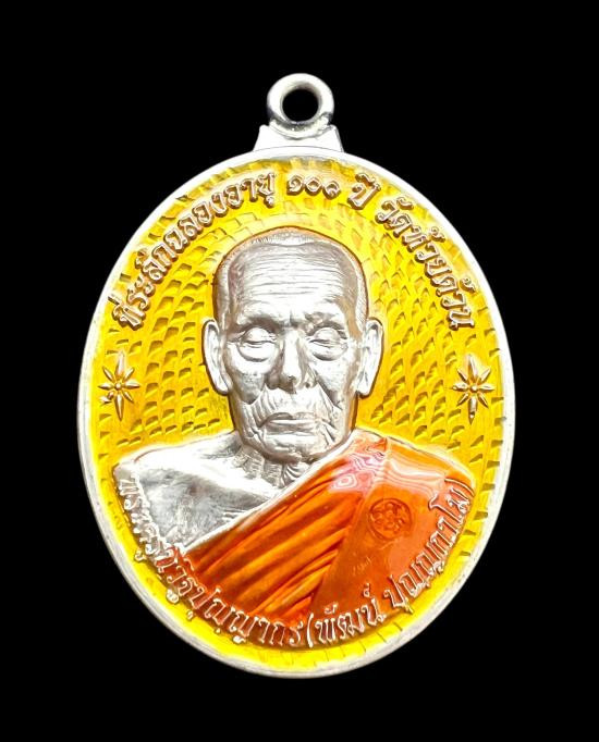 วัดใจ 100 PSGA เหรียญเจริญสุข งานบุญกฐิน หลวงพ่อยูร สคารโว วัดพนมเศษเหนือ จ.นครสวรรค์ ปี 2566 เนื้ออัลปาก้า กนกข้าง ลงยาน้ำเงิน จีวร หมายเลข 102 กล่องเดิม ***ป๋องสุพรรณการันตี