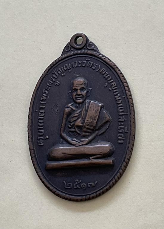 เหรียญครูบาคำปัน วัดสันโป่ง รุ่นแรก เนื้อทองแดง ห่วงเดิม ปี2519 จ.เชียงใหม่ + บัตรG-pra สภาพเดิมค่ะ