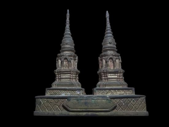 พระธาตุดอยตุงจำลองรุ่นแรก ฐานกว้าง 4.7 นิ้ว สูง 5.5 นิ้ว เนื้อทองเหลือง ปี2520 จ.เชียงใหม่ |
