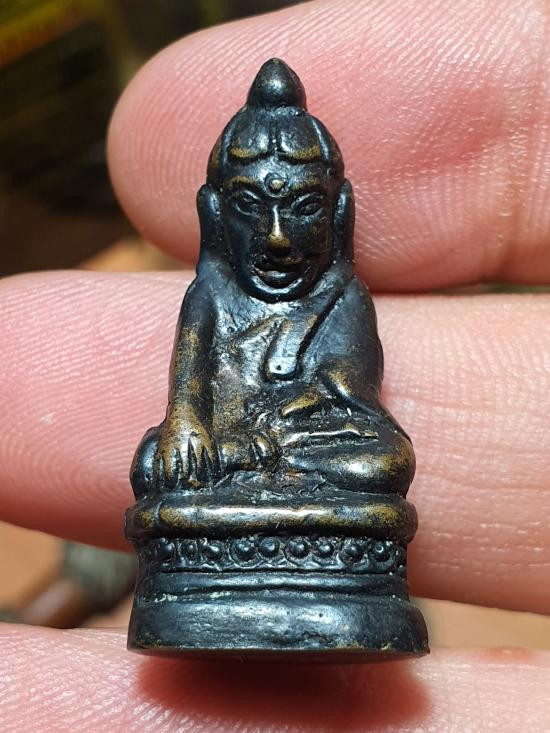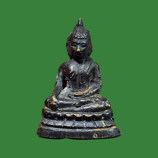 รูปหล่อพระเจ้าตาเขียว วัดบ้านเหล่าพระเจ้าตาเขียว อ.ป่าซาง ลำพูน โลหะรมดำปิดทอง 2537 ตอกโค๊ดที่ฐานพร้อมกล่องเดิม |