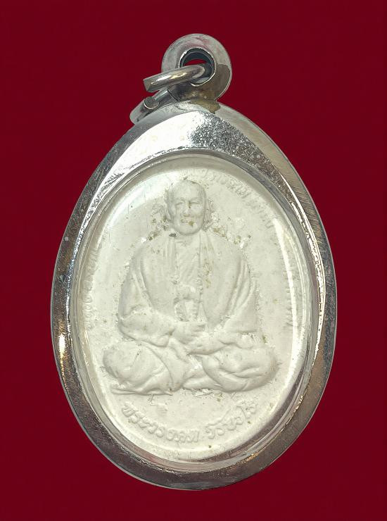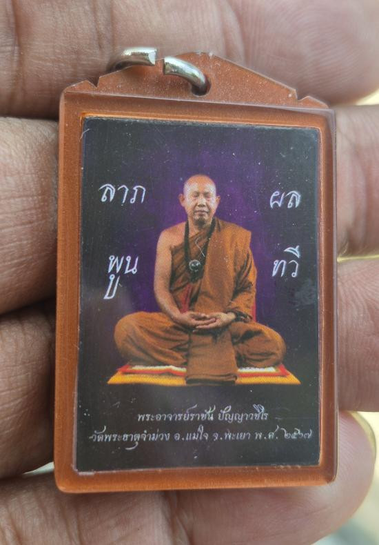 วัดใจ รูปถ่าย ลาภผล พลูทวี พระอาจารย์ราชัน วัดพระธาตุจำม่วง หลังตะกั่วจารมือ เลี่ยมพลาสติกโบราณ |
