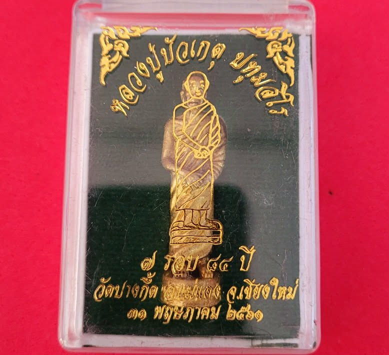 รูปหล่อยืน หลวงพ่อบัวเกตุ ปทุมสิโร วัดปางกึ๊ด อ.แม่แตง จ.เชียงใหม่ วาระ 7 รอบ 84 ปี เนื้อทองเหลือง ปี 2561 กล่องเดิม ตอกโค๊ดและหมายเลขกำกับ สวยๆ |