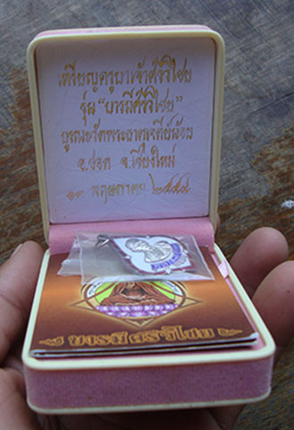 เหรียญ เนื้อเงินลงยา ครูบาเจ้าศรีวิชัย ตอกโค๊ต หมายเลข 825 ปี2554 สร้างน้อย 999 เหรียญ กล่องเดิม สวยครับ |