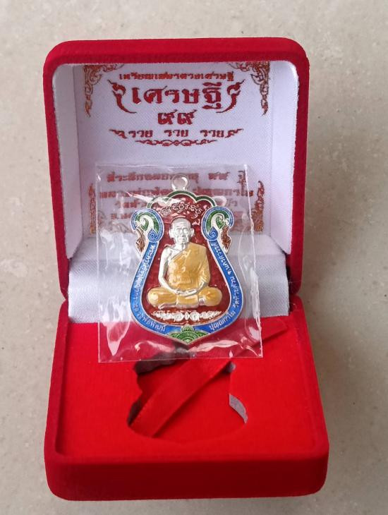เหรียญเสมาดวงเศรษฐี๙๙ รวย รวย รวย เนื้อเงินลงยาราชาวดีพื้นแดง หมายเลข ๑๔๘ สร้างปี 2563 หลวงพ่อพัฒน์ วัดห้วยด้วน สวยแชมป์ |