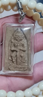 พี่ยักษ์ทองทิพย์ด้านหลังเป็นหลวงปู่ดู่ พรหมปัญโญเนื้อว่านผสมมวลสารผงจักพรรดิ จารและอธิฐานจิตโดยหลวงตาม้า วัดถ้ำเมืองนะเลี่ยมจากวัดพร้อมประคำ |