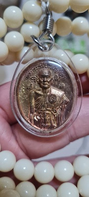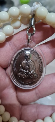 เหรียญอายุวัฒนมงคล 80 ปี เนื้อตะกั่ว(มีค่าดั่งทองคำ)หลวงตาม้า วัดถ้ำเมืองนะ พร้อมรอยจารหลวงตาม้า เลี่ยมจากวัดพร้อมประคำ