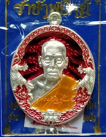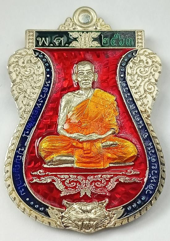 เหรียญเสมา "สารพัดรวย" หลวงพ่อพัฒน์ วัดห้วยด้วน เนื้อเงิน ลงยาขุ้ยพื้นสีแดง (น้ำหนัก 17.57กรัม) เบอร์ 93 พร้อมกล่องครับ