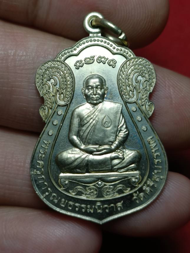 เหรียญเสมาดวงเศรษฐี๙๙ รวย รวย รวย เนื้อเงินลงยาราชาวดีพื้นแดง หมายเลข ๑๔๗ สร้างปี 2563 หลวงพ่อพัฒน์ วัดห้วยด้วน สวยแชมป์