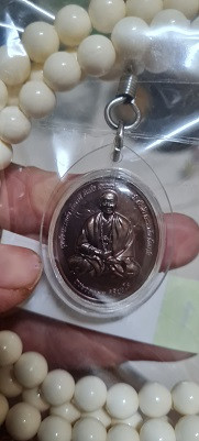 เหรียญอายุวัฒนมงคล 80 ปี เนื้อตะกั่ว(มีค่าดั่งทองคำ)หลวงตาม้า วัดถ้ำเมืองนะ พร้อมรอยจารหลวงตาม้า เลี่ยมจากวัดพร้อมประคำ