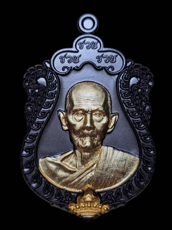 เหรียญเสมารุ่น รวยคู่บารมี 168 หลวงพ่อพัฒน์ วัดห้วยด้วน นครสวรรค์ เลี่ยมกรอบทองไมครอน