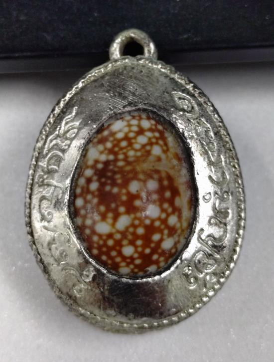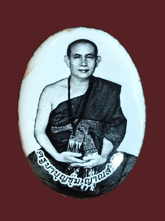 ล็อกเก็ตฉากขาวดำครูบาบุญชุ่ม ด้านหลังฝังมวลสารตะกรุดผ้าจีวร |