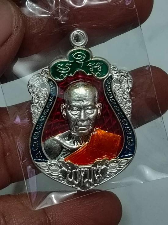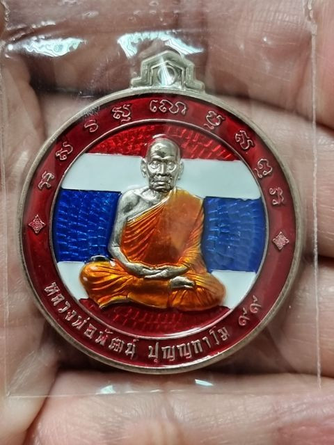เหรียญเสมา ดวงเศรษฐี๙๙ รวย รวย รวย หลวงพ่อพัฒน์ วัดห้วยด้วน (ขนาดเหรียญสูง 4.0 ซ.ม.) เนื้อเงิน ลงยาลายธงชาติ หมายเลข 549 |