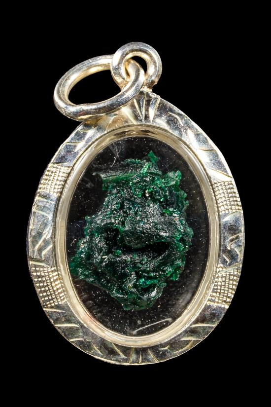 (เคาะแดง2900) +บัตรสมาคม สีผึ้งเขียวหลวงพ่อทาบ วัดกระบกขึ้นผึ้ง เลี่ยมเงิน