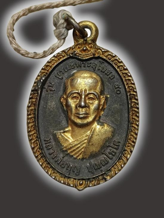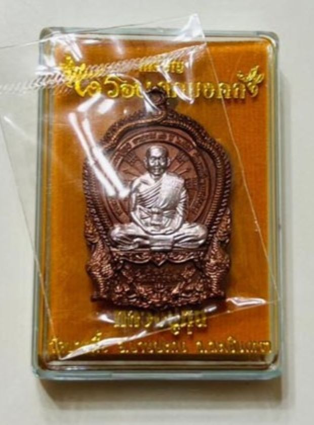 เหรียญ 8 รอบ ศุภมงคล หลวงปู่หุน วัดบางผึ้ง จ.ฉะเชิงเทรา เนื้อนวะโลหะหน้ากากเงิน เลข76