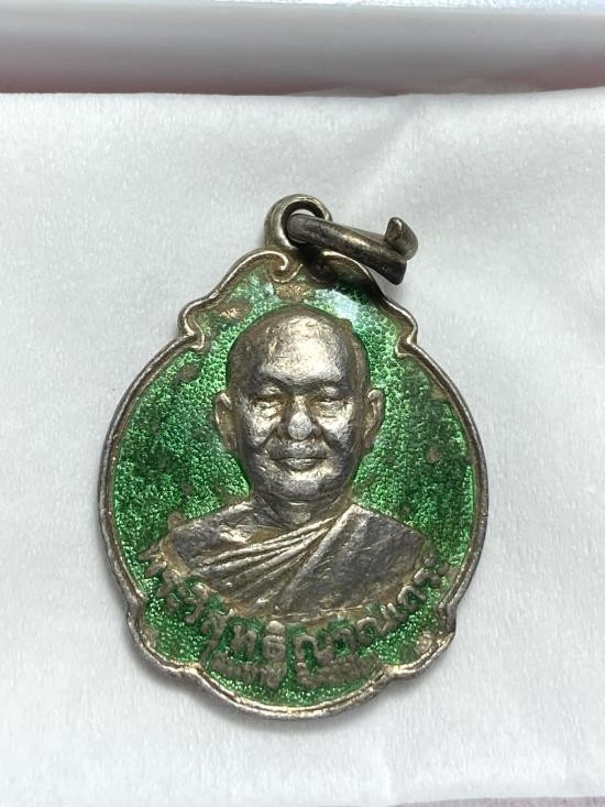 เคาะเดียวแดง เหรียญพัดยศ เนื้อเงิน ลงยาเขียว หลวงพ่อสมชาย วัดเขาสุกิม |