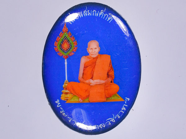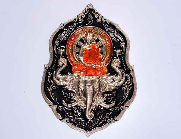 พระชัยวัฒน์สุคโต เนื้อนวะโลหะ ปี 2534 หลวงปู่ม่น วัดเนินตามาก ชลบุรี พร้อมกล่องเดิม |