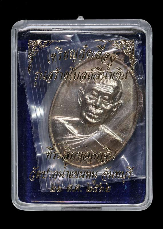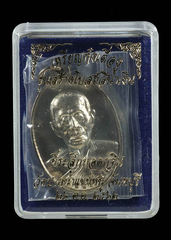 เหรียญเจริญพร(สร้างโบสถ์)หลวงพ่อโสต วัดเขาหินโค่ง จ.จันทบุรี เนื้อเงินหน้ากากทองคำ หมายเลข8 พร้อมกล่อง |