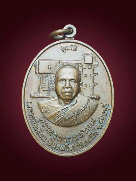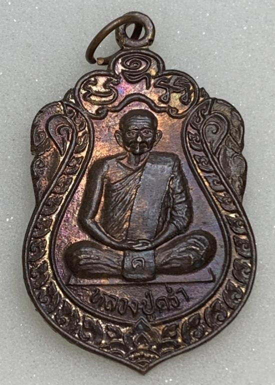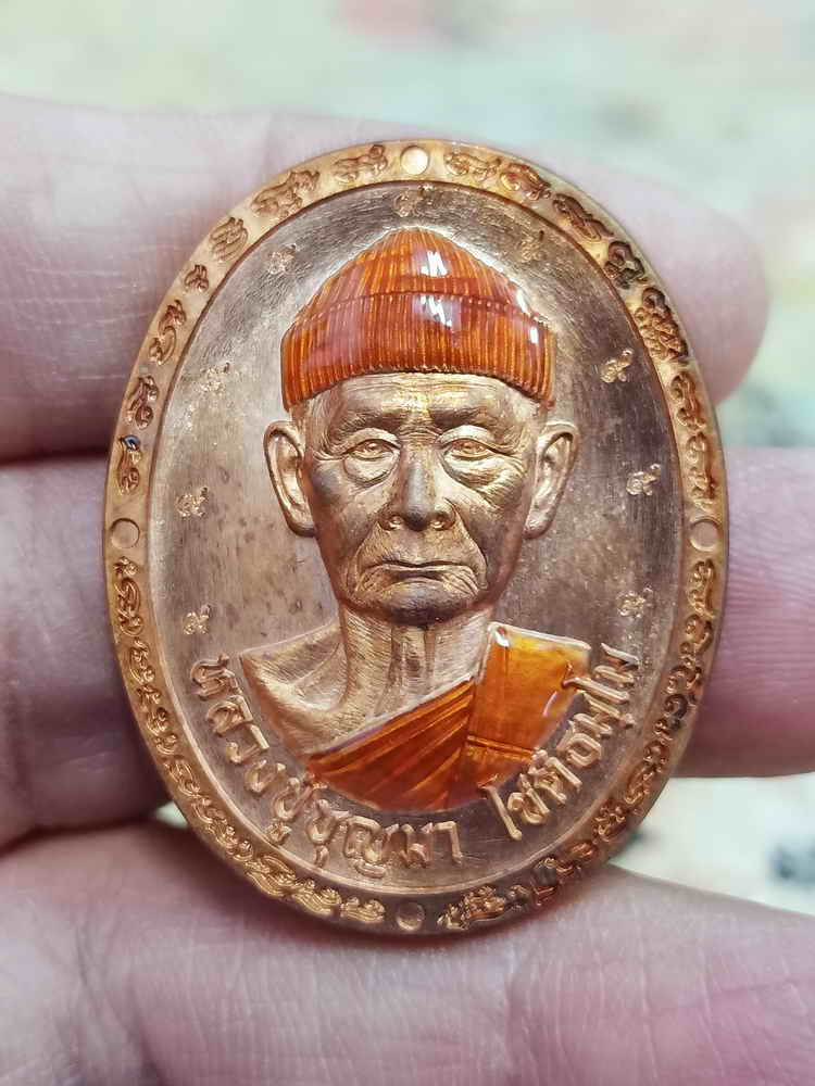 -วัดใจเคาะเดียวแดง- เหรียญไตรมาสเนื้อทองแดงลงยาสีทอง หลวงปู่ม่น วัดเนินตามาก ปี 37 |