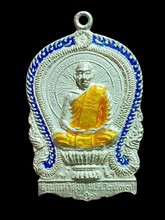 หลวงปู่ฮก รตินธโร วัดราษฏร์เรืองสุข จ.ชลบุรี เหรียญนั่งพานสำเภาทอง ไตรมาส 58 เนื้ออัลปาก้าลงยา หมายเลข 1712 กล่องเดิม |