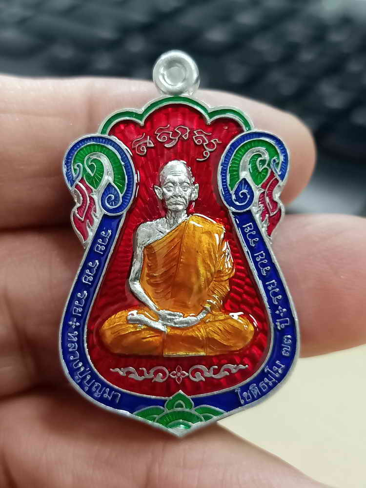 วัดใจ***เหรียญเสมา 8 รอบ หลวงปู่คร่ำ วัดวังหว้า ปี2535 เนื้อเงินลงยา 3โค็ด |