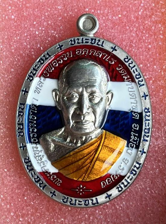 เหรียญนั่งพาน หลวงปู่ปัญญา วัดหนองผักหนาม จ.ชลบุรี ปี2554 " ด้านหลังพระอาจารย์ชัยเจ้าอาวาส " เนื้อเงินลงยาสามสี หมายเลข 192 สร้างจำนวน 299 องค์เอามาลงขายแบ่งปันในเว็ป วัดใจเท่าไหนเท่านั้น พิจารณาให้ชอ |