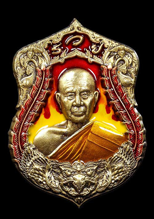 เหรียญใบเสมามังกร มงคลอายุ 90 ปี หลวงพ่อสิน เนื้อนวะลงยา พร้อมกล่องเดิม แดง 100 no.5 |