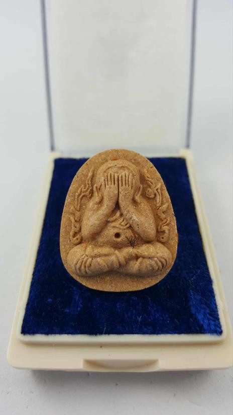 พระปิดตาปทุมสิโร หลวงปู่บัวเกตุ ปทุมสิโร เลขสวยๆ87 พิมพ์กนกข้าง เนื้อผงยาจินดามณี |