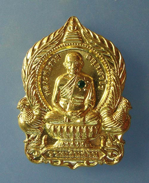 เหรียญขี่ไก่หลวงปู่คร่ำ วัดวังหว้า รุ่นประทานพร เนื้อทองแดงกระไหล่ทอง อ.แกลง จ.ระยอง |