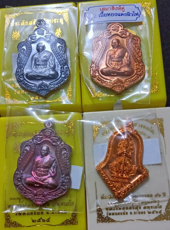 วัดใจ40 พระผงรูปเหมือนที่ระลึกในการฉลองซุ้มประตู หลวงพ่อทองสุข วัดหนองฆ้อ ระยอง รวม4องค์ มีฝังตะกรุด2องค์ |