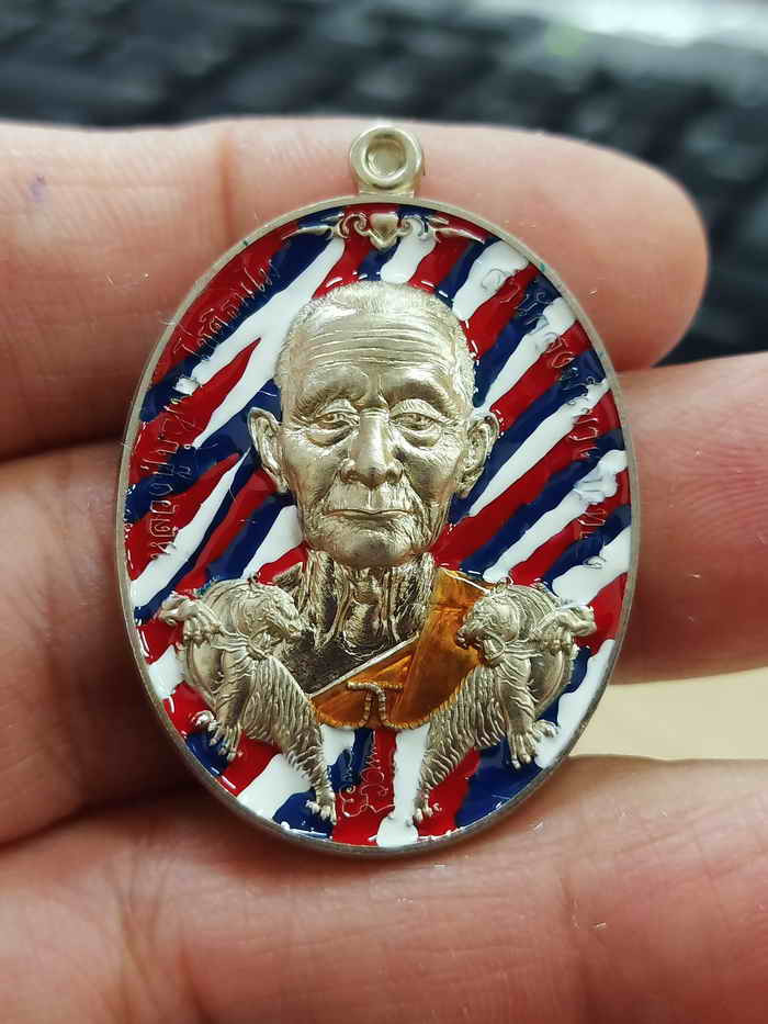เหรียญเจริญพรบน หลวงปู่เปลว วัดเจ็ดลูกเนิน ระยอง เนื้อนวะโลหะ หน้ากากเงิน ลงยาจีวร เลขสวยๆ 363 จมูกไม่มีโดน สร้างน้อย เลี่ยมกันน้ำพร้อมบูชา กล่องเดิมครบ