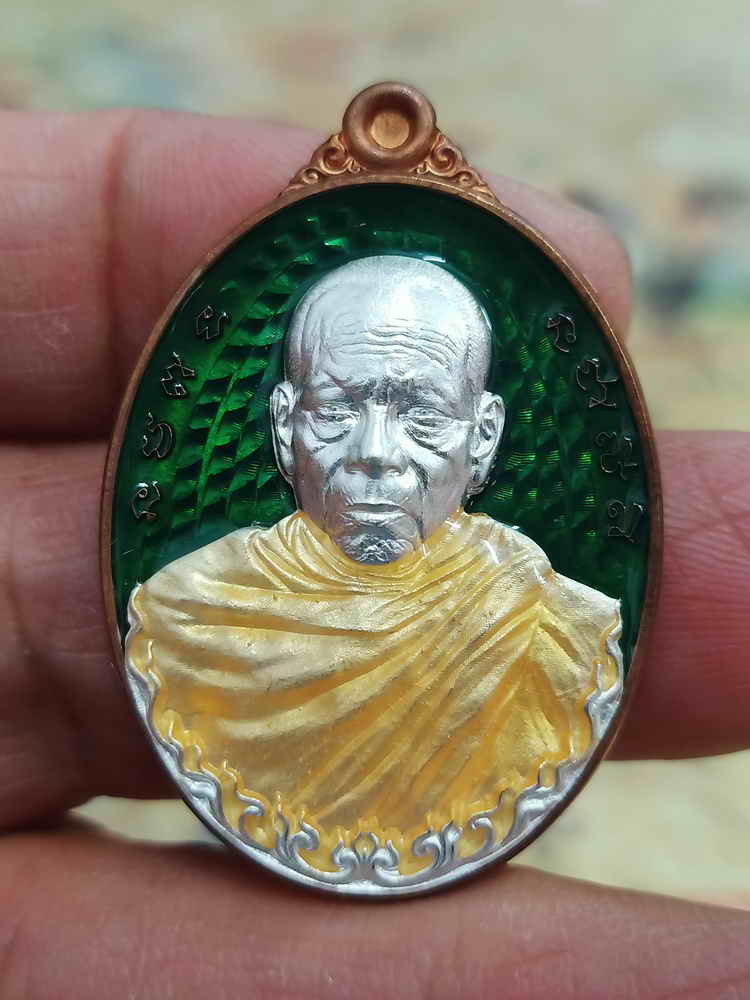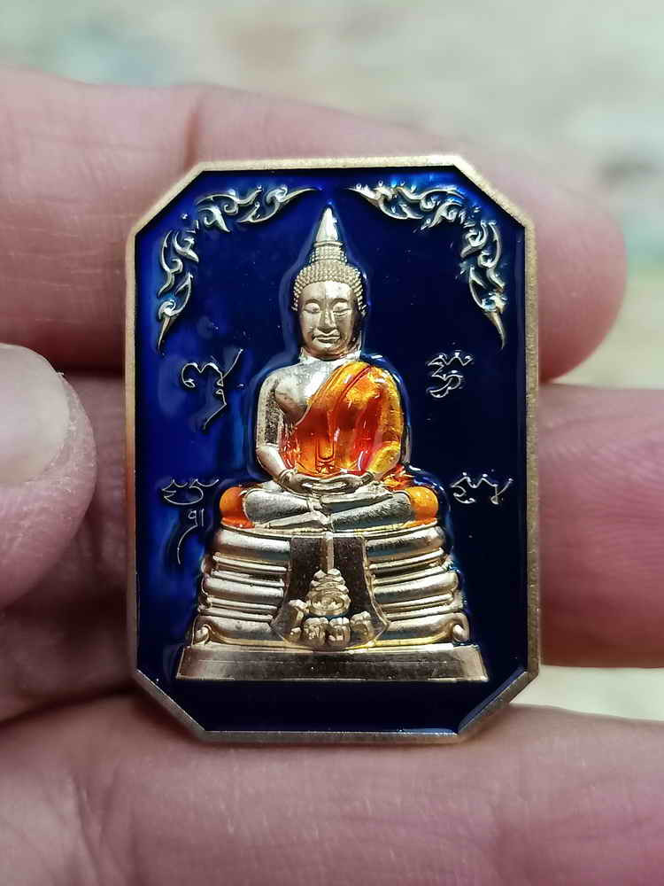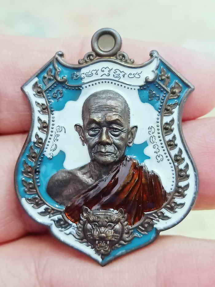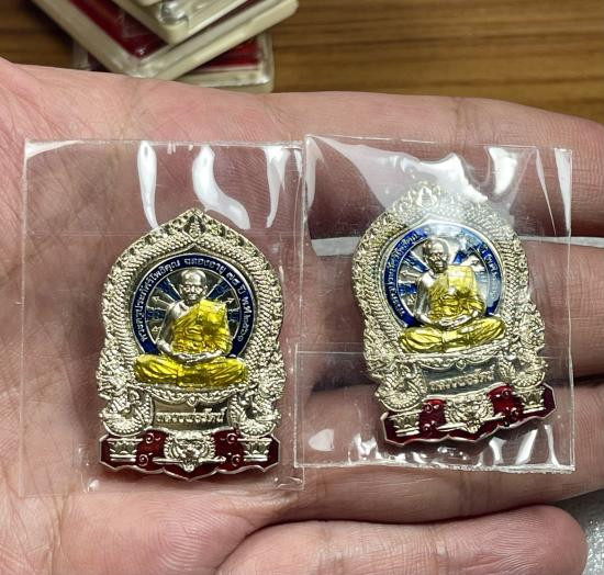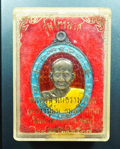 เหรียญชนะจน เนื้อนวะโลหะ ลงยาพื้นฟ้า ลงยาขอบ ลงยาจีวร ห่วงเชื่อมเงิน หลวงพ่อรวย วัดมาบตาพุด จ.ระยอง (---A82---) |