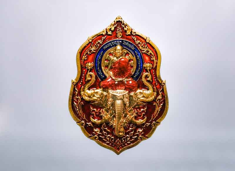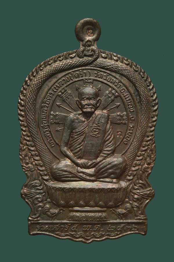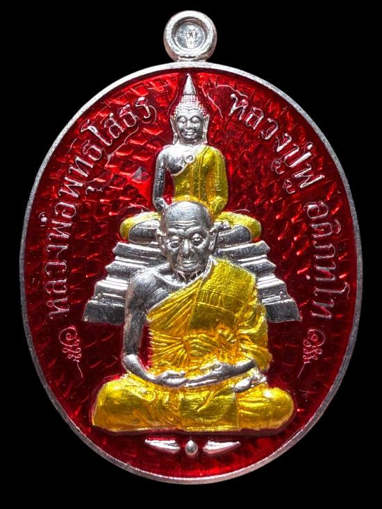 หลวงปู่ฮก รตินธโร วัดราษฏร์เรืองสุข จ.ชลบุรี เหรียญนั่งพานสำเภาทอง ไตรมาส 58 เนื้ออัลปาก้าลงยา หมายเลข 1754 |