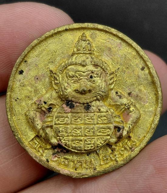 เหรียญหลวงพ่อหันต์ หลังยันต์หมวกเหล็ก วัดชากขุนวิเศษ ระยอง ปี 16 กะไหล่ทอง |