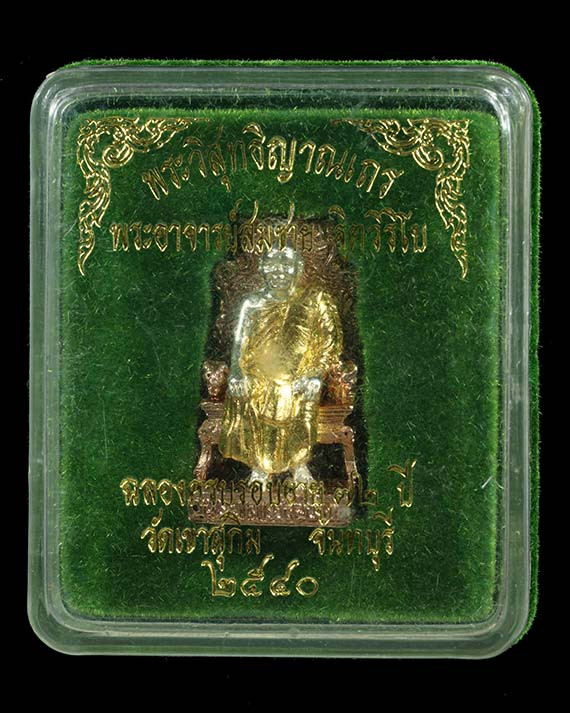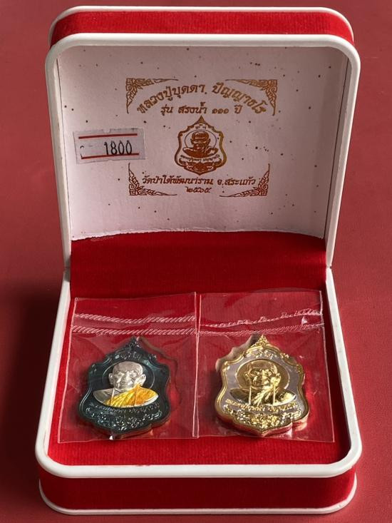 เคาะเดียวแดง หลวงปู่บุดดา รุ่น แสตมป์เงินล้าน รายการที่3 ชุดรองประทาน เนื้อ นวะหน้ากากเงินหน้าหลัง นวะลงยาฝังพลอยเขียว (ไม่มีเนื้อเงิน) |