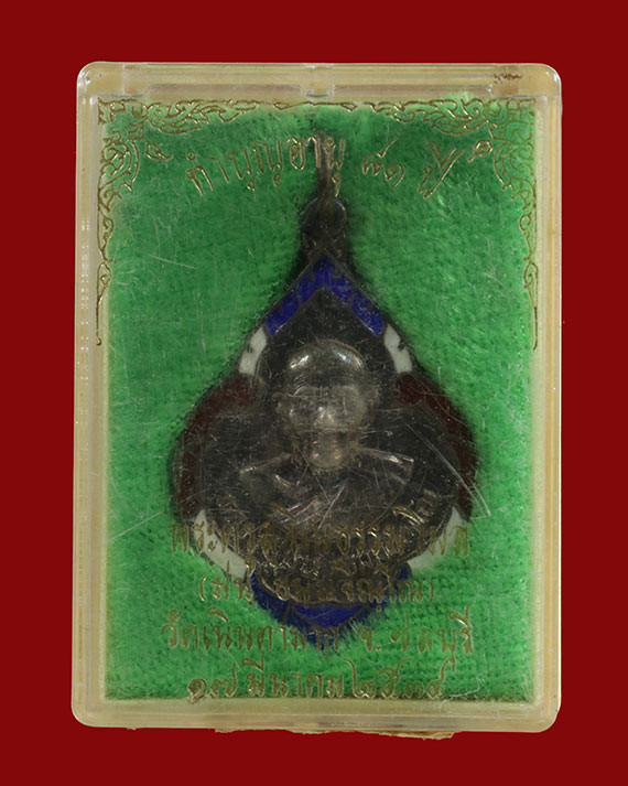 เหรียญนั่งพาน รุ่นเมตตา หลวงปู่ม่น วัดเนินตามาก ชลบุรี พิธีใหญ่ปี37 เนื้อนวะโลหะ เลข 6902 สวยมาก มีกล่องเดิมครับ |