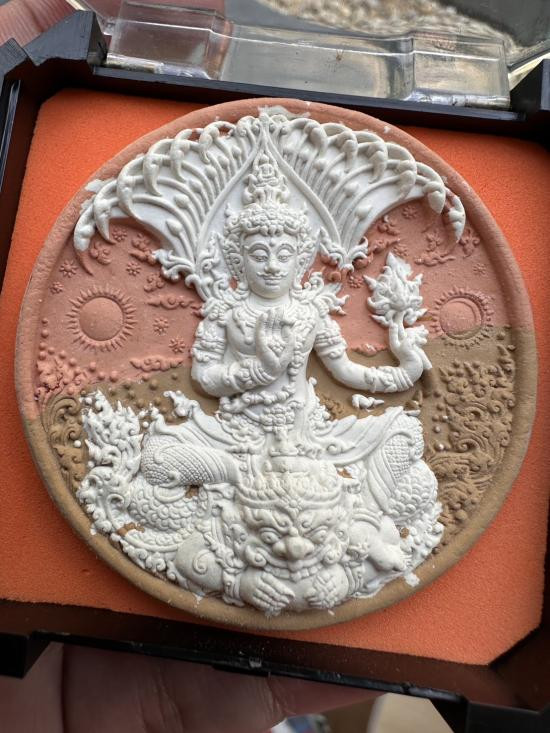 กราบขออนุญาตท่านอ.เฉลิมชัย โฆษิตพิพัฒน์ นำเสนอ อภิปัญญามหาเศรษฐี พิมพ์เล็ก ขนาด 3.5 ซม. เนื้อผงพุทธคุณ 1 ชุด สามสี พร้อมกล่องเดิม มีปลอกขาวครบ |