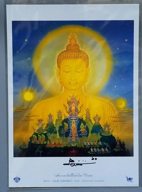กราบขออนุญาตท่านอาจารย์เฉลิมชัยแบ่งปัน ภาพพิมพ์พระพุทธเจ้าเสด็จจากดาวดึงส์เปิดสามโลก ขนาด A4 ลายเซ็นสดท่านอาจารย์เฉลิมชัย โฆษิตพิพัฒน์ |