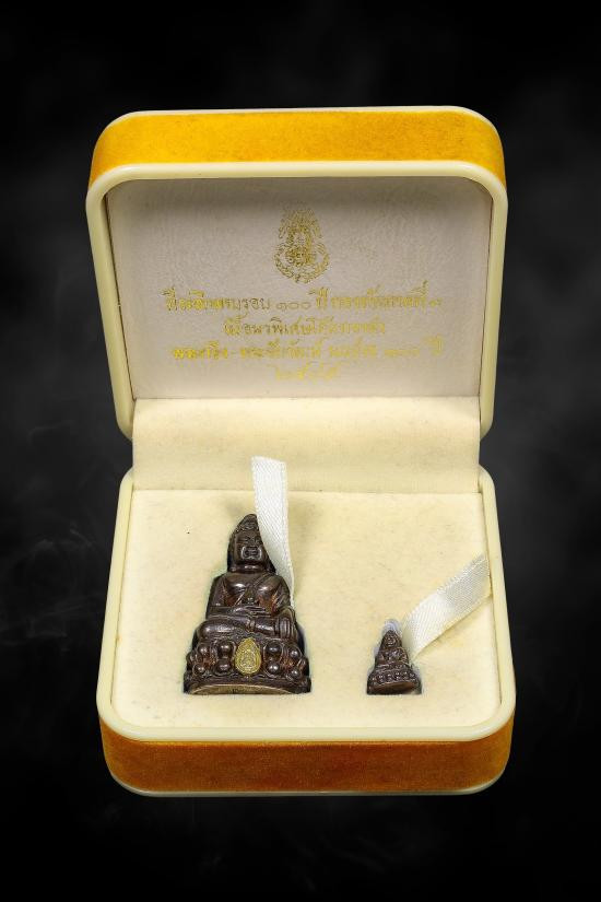พระกริ่ง-พระชัยวัฒน์ไพรีพินาศผิวไฟ ญสส. ครบ 90 พรรษา วัดบวรนิเวศวิหาร ปี 2546 กล่องกำมะหยี่ 2 กล่อง |