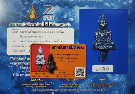 พระชัย หลวงปู่ธูป วัดแค พ.ศ.2484 พร้อมบัตรการันตีรับรอง |