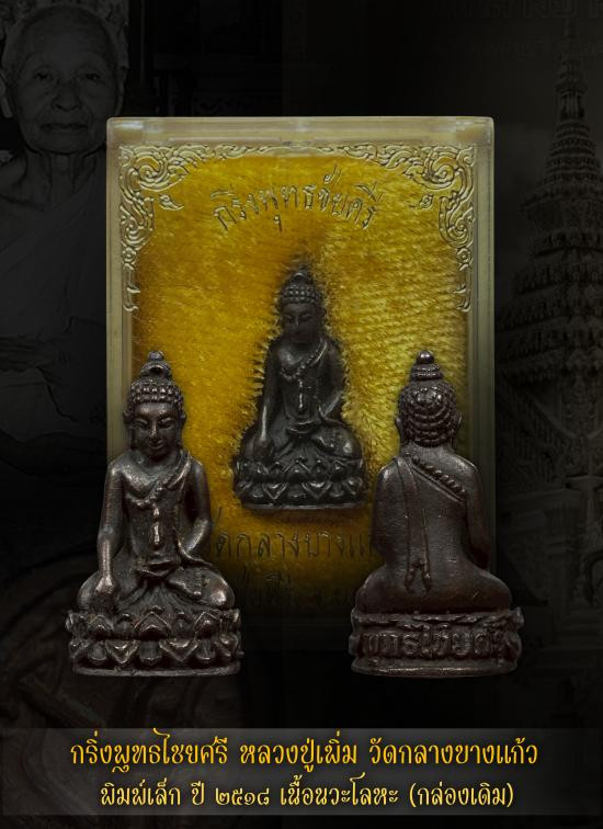 วัดใจ แบ่งปันพระแท้ กริ่งพุทธไชยศรี หลวงปู่เพิ่ม วัดกลางบางแก้ว พิมพ์เล็ก ปี ๒๕๑๘ เนื้อนวะโลหะ (กล่องเดิม) |