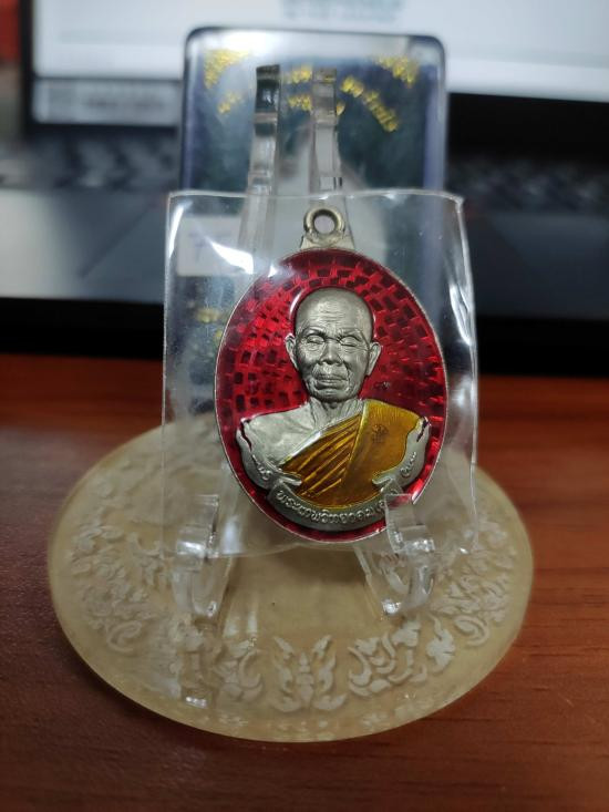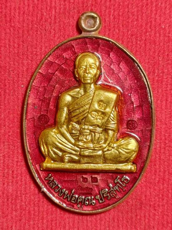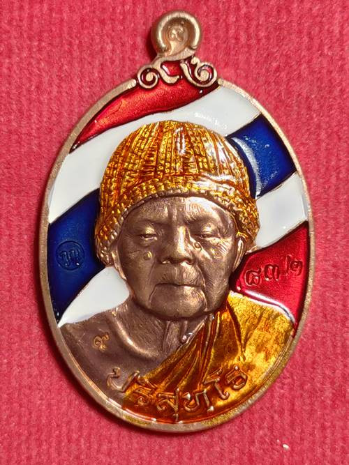 เหรียญเจริญพรล่าง หลวงพ่อคูณ วัดบ้านไร่ เนื้อกะไหล่ทองลงยาลายธงชาติหน้ากากทองคำแท้ หมายเลข 45 ปี 2557 |