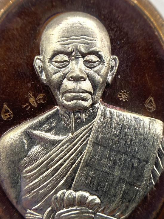เหรียญรูปไข่ หลวงพ่อคูณ ปริสุทฺโธ วัดบ้านไร่ พิมพ์ครึ่งองค์ รุ่นปาฏิหาริย์ EOD ปี56 เนื้อทองแดงหน้ากากเงิน หลังเรียบ ไม่ตัดปีก |