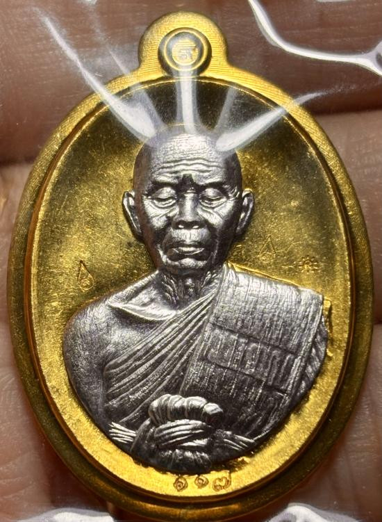 เหรียญอายุยืน รุ่นพิเศษ ปี2553 เนื้อเงิน ไม่ตัดปีก หน้ากากทองคำ no.24 มีกล่อง |