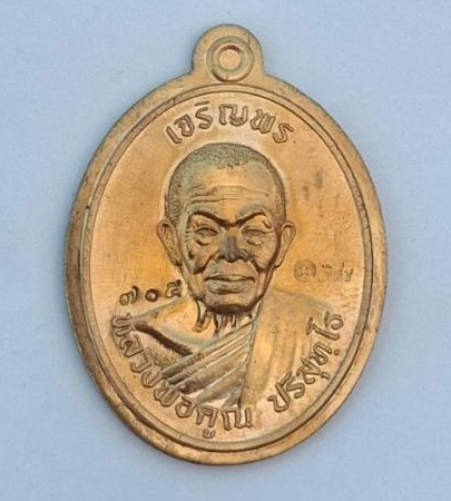 วัดใจ รูปเหมือนปั๊มลอยองค์หลวงพ่อคูณ ปริสุทฺโธ เนื้อทองแดงมันปู ชุดกรรมการ รุ่นเทพเจริญพร วัดบ้านไร่ จ.นครราชสีมา ปี 2557 |