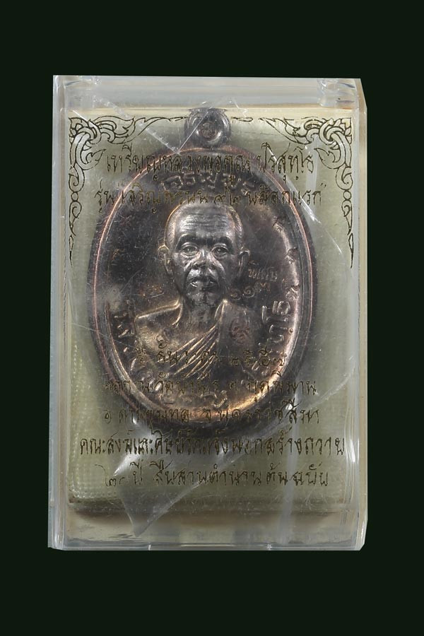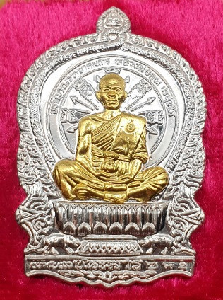 เหรียญนั่งพานชนะมาร ๒ วัดสร้าง ปี ๒๕๕๗ เนื้อเงินหน้ากากทองคำ หมายเลข ๒๑ จมูกโด่งเต็มสวย พร้อมกล่องเดิมๆ |