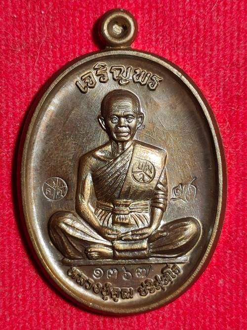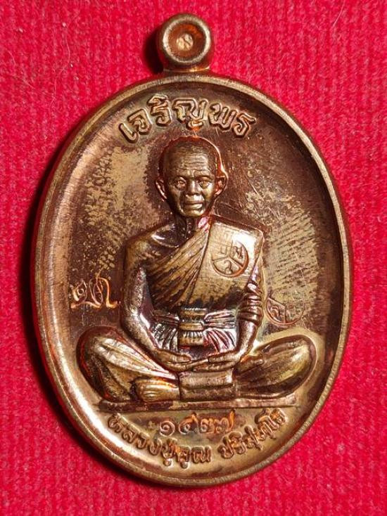 เหรียญนั่งพานหลวงพ่อคูณ รุ่นมหาอำนาจ วัดบ้านไร่ อ.ด่านขุนทด จ.นครราชสีมา ปี 2557 เนื้อนวโลหะ พร้อมกล่องเดิม หมายเลข 326 |