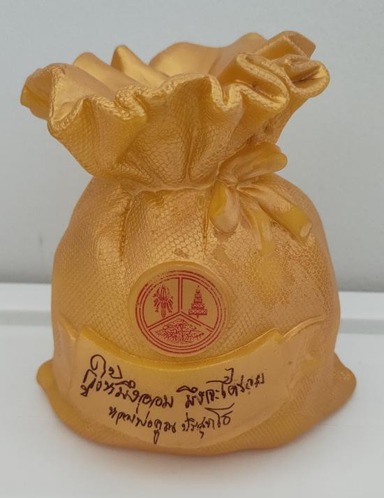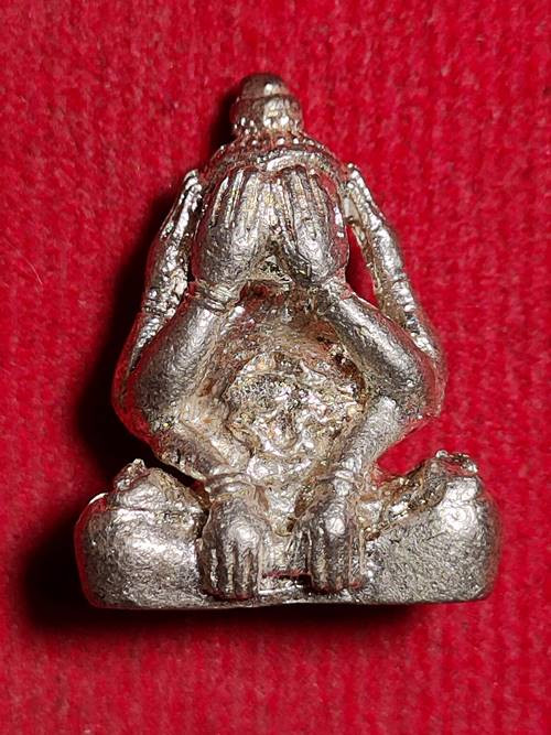 กวักคูณมหาลาภเรียกทรัพย์ คูณเงิน คูณทอง ( เนื้อโลหะกะไหล่เงิน ) พ.ศ.2545 ( กล่องเดิม ) |