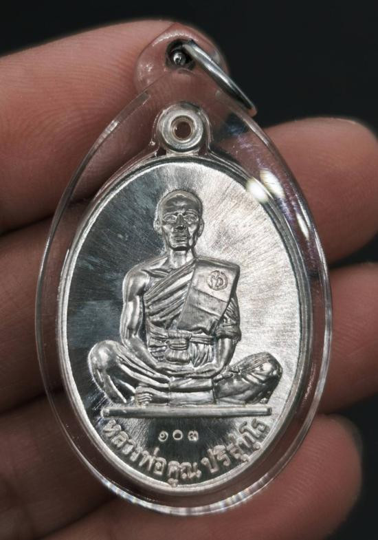 เหรียญห่วงเชื่อม รุ่นแรก หลวงพ่อคูณ ปริสุทโธ วัดบ้านไร่ เนื้อเงิน เลขสวย 63 ปี2557 เลี่ยมเงินพร้อมใช้ แดงเคาะแรก |